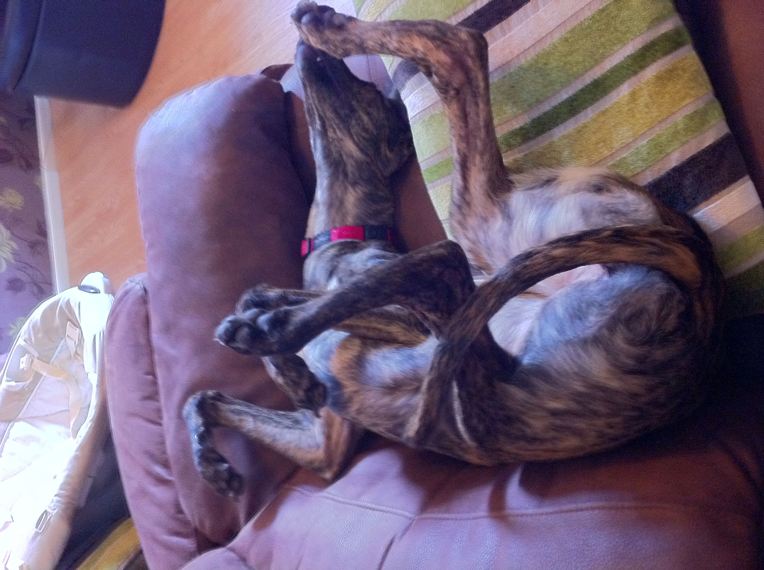 Here's my Greyhound pup, she's 10 months old now and is getting big. She's a proper loon and not like other Greyhounds you might of met because she has never known the racing life.