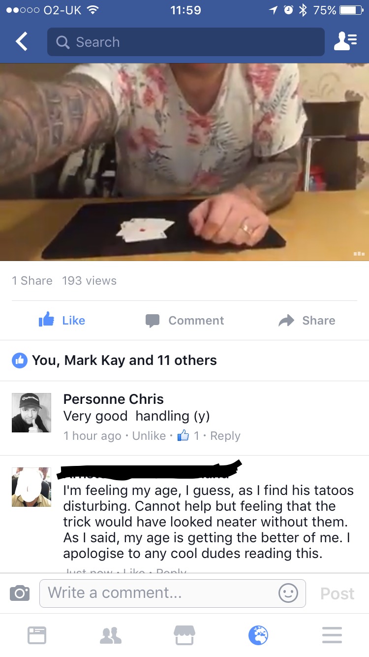 Magic1Jim wrote:Personally I'm not really bothered it was just unexpected, given the fact that this was a facebook video not a paid gig